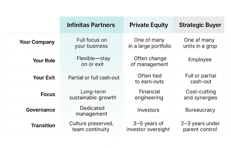 Infinitas Partners is not just an investor — we are long-term stewards committed to sustaining the purpose, people and values that make each company unique.