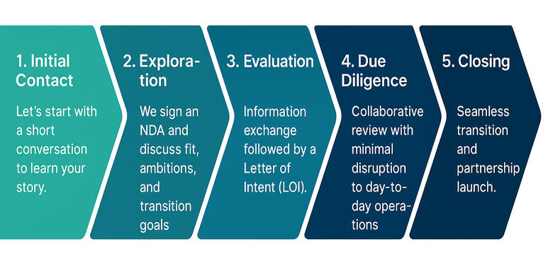 We acquire profitable, established companies where owners care about their people, clients and legacy. Whether you are looking for a full exit or a gradual transition, we offer a responsible succession with long term stewardship, not aggressive restructuring.